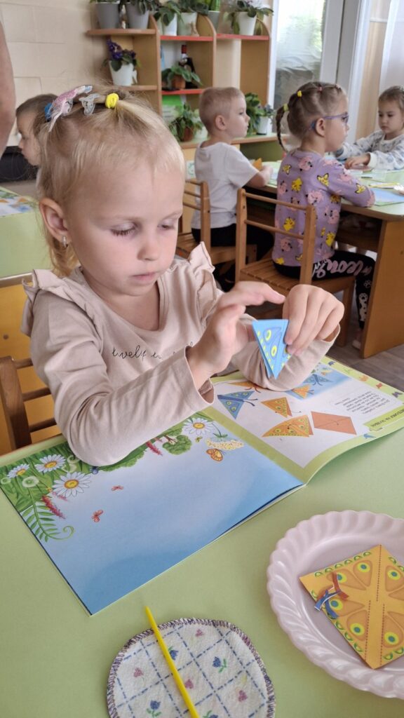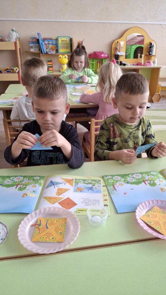 Діти перетворювали звичайні аркуші на пташок, квіточки, метеликів і чарівні човники, що мандрують у країну мрій. 🌸🦋 Маленькі долоньки творили дива, а оченята світилися від радості. Так папір оживав, а разом із ним — і дитяча фантазія, добро та натхнення. 💛 Бо кожен день, коли діти творять, — це день маленького дива! ✨