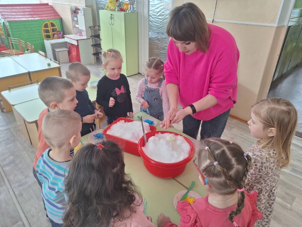 Сніг тихо спускався з неба, ніби знав дорогу саме до нас, щоб привітатися з малюками. Він кружляв у повітрі, сідав на долоньки й щічки, запрошуючи дітей у білу казку. ![]()