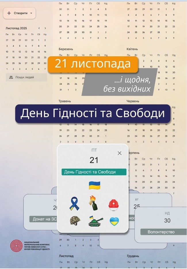 21 листопада в Україні вшановують патріотизм та мужність громадян які восени 2004 року а також у період з листопада 2013 року по лютий 2014 року, стали на захист демократичних цінностей, прав та свобод людини і громадянина, національних інтересів держави та її європейського вибору.
