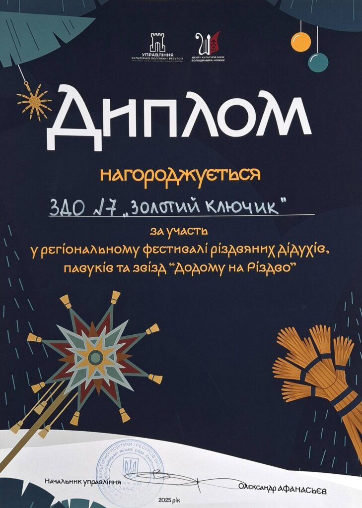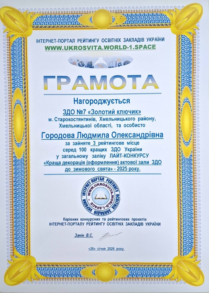 📌ІІІ рейтингове місце серед 100 кращих ЗДО України у ЛАЙТ-КОНКУРСІ «Краща декорація» (оформлення) актової зали до зимового свята – 2025 року від інтернет -порталу рейтингу освітніх закладів України.