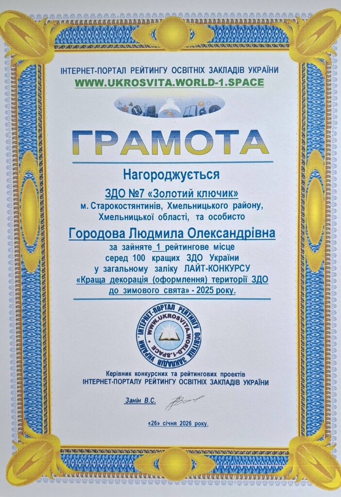 📌І рейтингове місце серед 100 кращих ЗДО України у ЛАЙТ-КОНКУРСІ «Краща декорація» (оформлення) території до зимового свята – 2025 року від інтернет-порталу рейтингу освітніх закладів України.