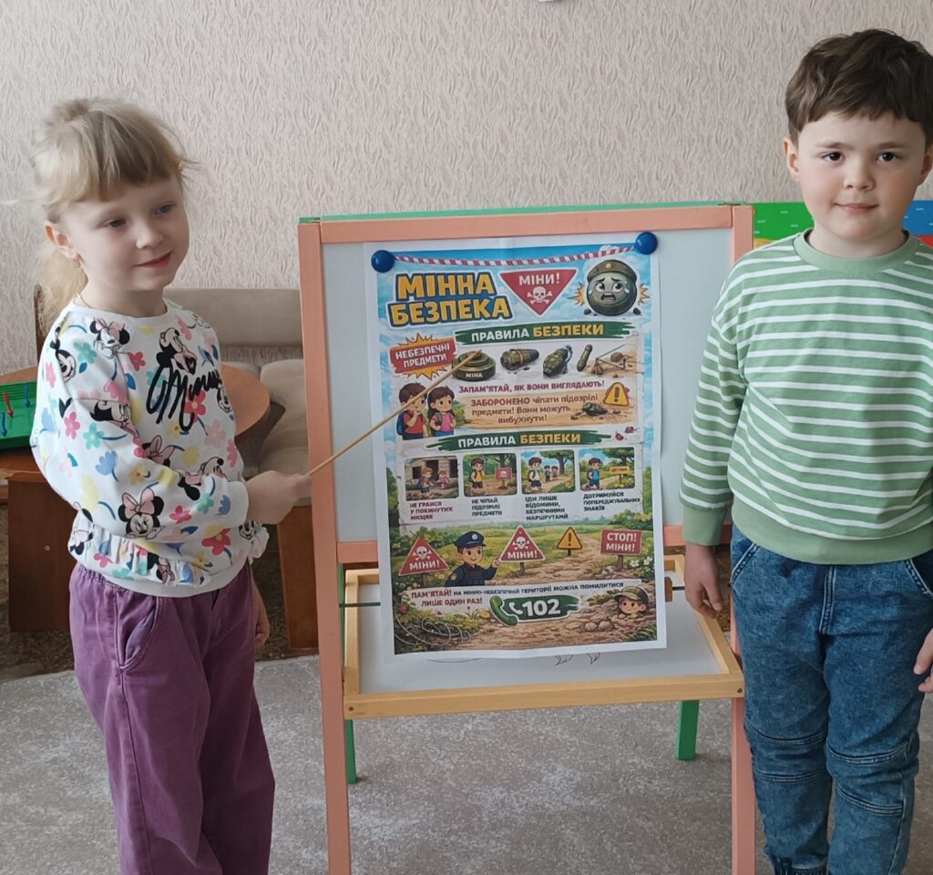 З метою популяризації правил мінної безпеки та безпечної поведінки серед дітей, у разі виявлення вибухонебезпечних предметів. Вихователі знайомили дітей з основними правилами безпечної поведінки. Дошкільнята дізналися, як розпізнавати небезпечні предмети, чому не можна їх торкатися та як діяти у разі виявлення підозрілих знахідок. Через бесіди, перегляд пізнавальних матеріалів та тематичні заняття формувалися життєво важливі навички обережності та відповідальності.